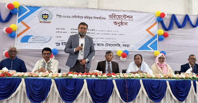 বগুড়ায় পুন্ড্র ইউনিভার্সিটি অব সায়েন্স অ্যান্ড টেকনোলজিতে স্প্রিং ২০২৬ সেমিস্টারে ভর্তিকৃত শিক্ষার্থীদের ওরিয়েন্টেশন অনুষ্ঠিত হয়েছে। শনিবার সকালে বিশ্ববিদ্যালয় অডিটোরিয়ামে নবীন শিক্ষার্থীদের এই আয়োজনে প্রধান অতিথি হিসেবে বক্তব্য রাখেন বগুড়া বিজ্ঞান ও প্রযুক্তি বিশ্ববিদ্যালয়ের উপাচার্য অধ্যাপক ড: কুদরত ই-জাহান।