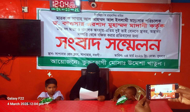 সাপাহারে সৎ মায়ের সম্পদ আত্মসাতের অভিযোগে মাদরাসা পরিচালকের বিরুদ্ধে: সংবাদ সম্মেলন
