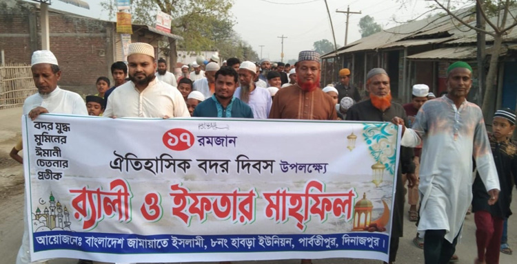 পার্বতীপুরে ঐতিহাসিক বদর দিবস উপলক্ষে জামায়াতে ইসলামীর র্যালি ও ইফতার মাহফিল অনুষ্ঠিত