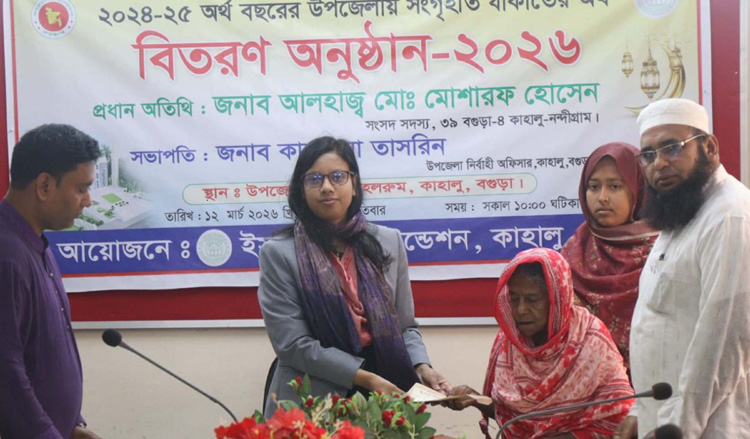 কাহালুতে দুস্থদের মাঝে ইসলামিক ফাউন্ডেশনের যাকাতের অর্থ বিতরণ