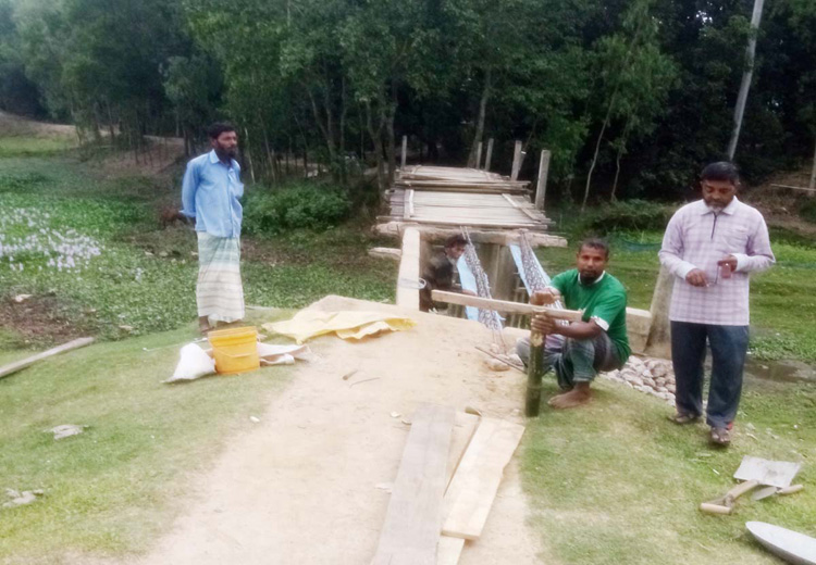 ঘোড়াঘাটে ৪০ বছর ধরে ১০ গ্রামের লোকজন নিজেরাই কাঠের ব্রীজটি মেরামত করে চলাফেরা করে