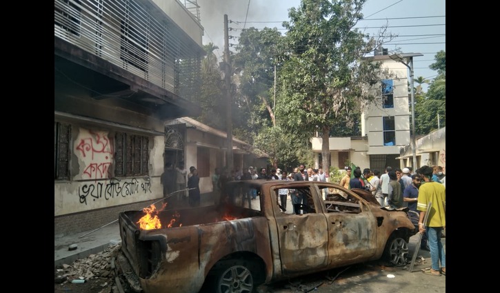 এর আগে, গত ৫ আগস্ট বিকেলে ওই বাড়ির পাঁচটি বসতঘর ও দুটি গাড়ি ভাঙচুর ও অগ্নিসংযোগ করা হয়েছিল। এ বিক্ষুব্ধ জনতাকে বিভিন্ন আসবাবপত্র নিয়ে যেতে দেখা যায়।